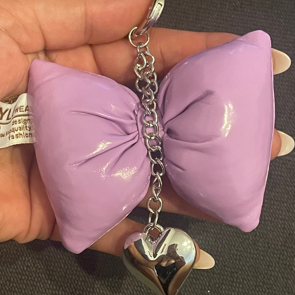 Bow Bag Charm mit Herzanhänger ( 3 Farben)